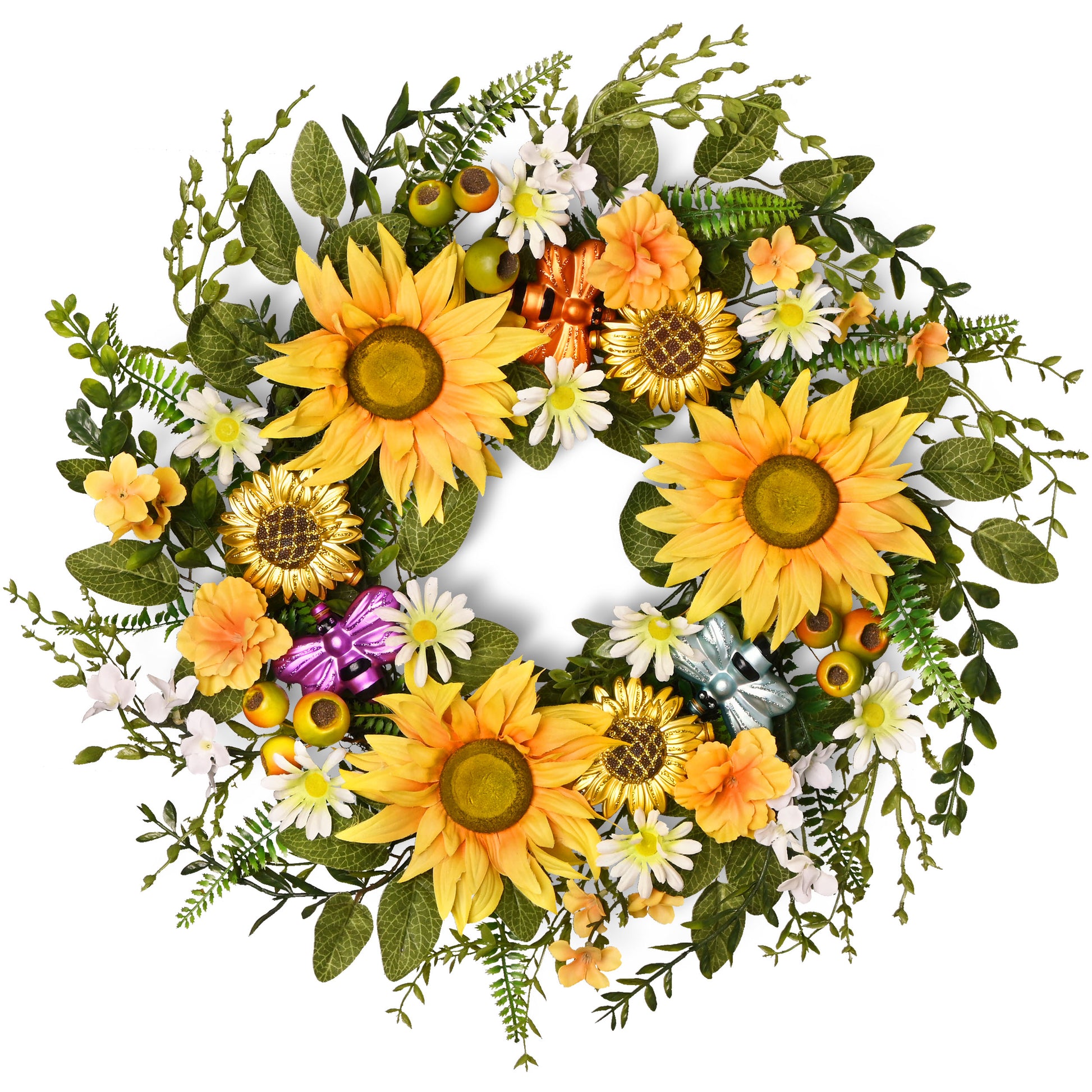 DecorbyHannah 22 Inch Spring Sunflower Wreaths for Front Door