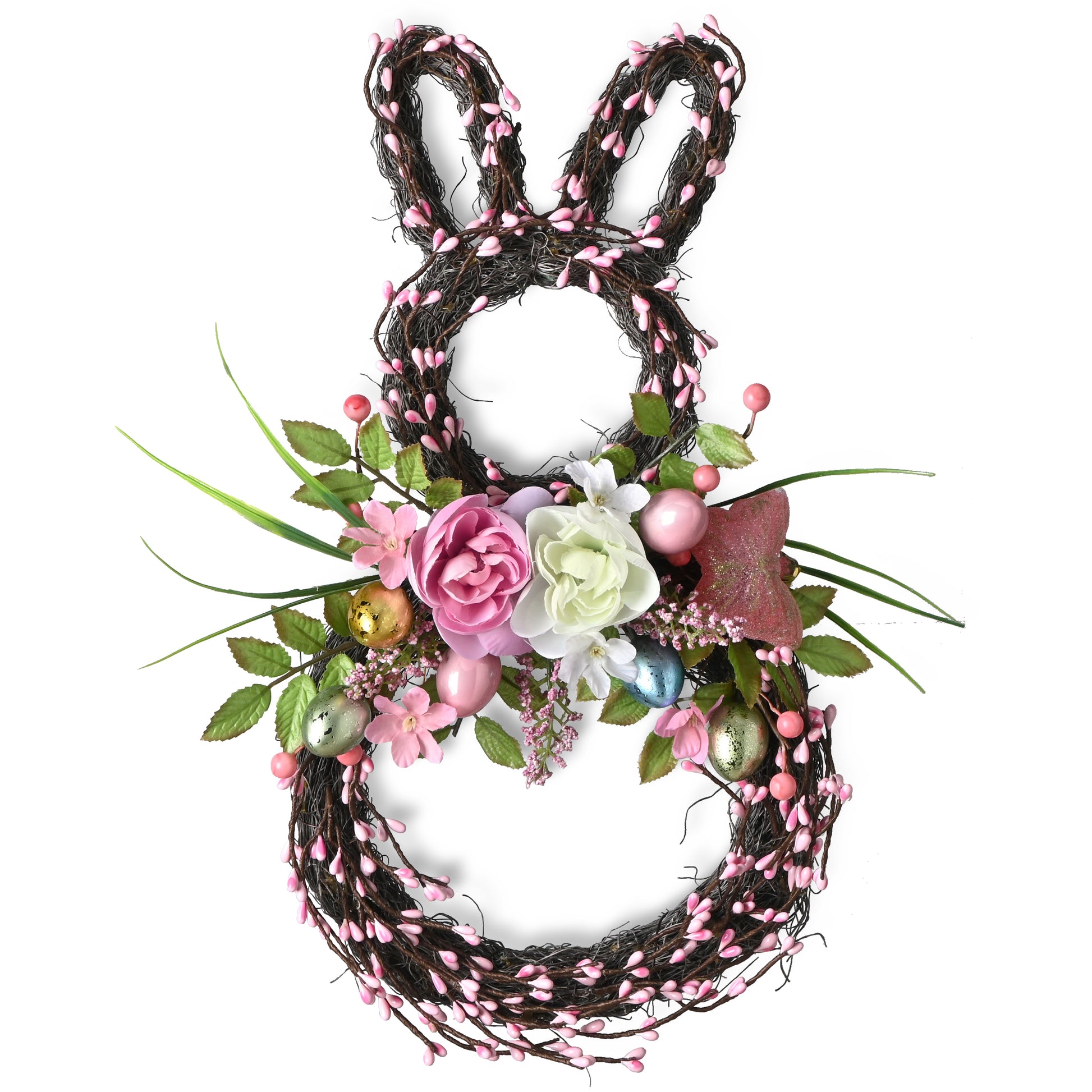 DecorbyHannah Easter Wreaths Bunny of 18 Inch with Pastel Eggs