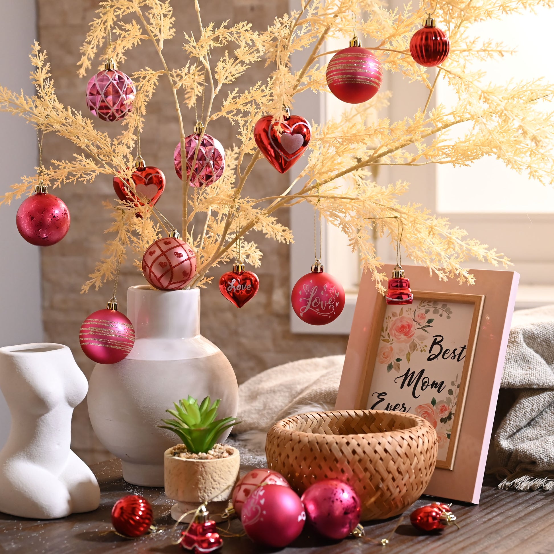 Decorbyhannah Pink Christmas Ornaments, 21ct Ornaments Set for Tree Decorations, Shatterproof Christmas Ball Ornaments for Valentines Day Xmas Wedding Party Home Decor